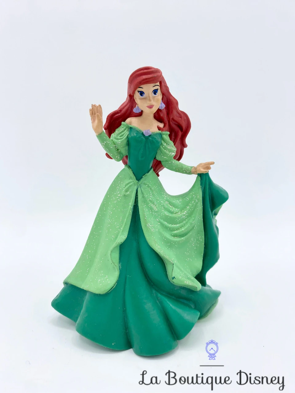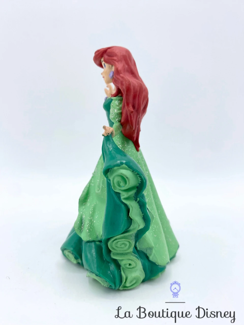 Figurine en plastique peinte à la main d’Ariel, la plus célèbre des sirènes. Elle est en tenue de bal, avec une sublime robe verte à paillettes. Elle porte des boucles d’oreilles en forme de coquillages.