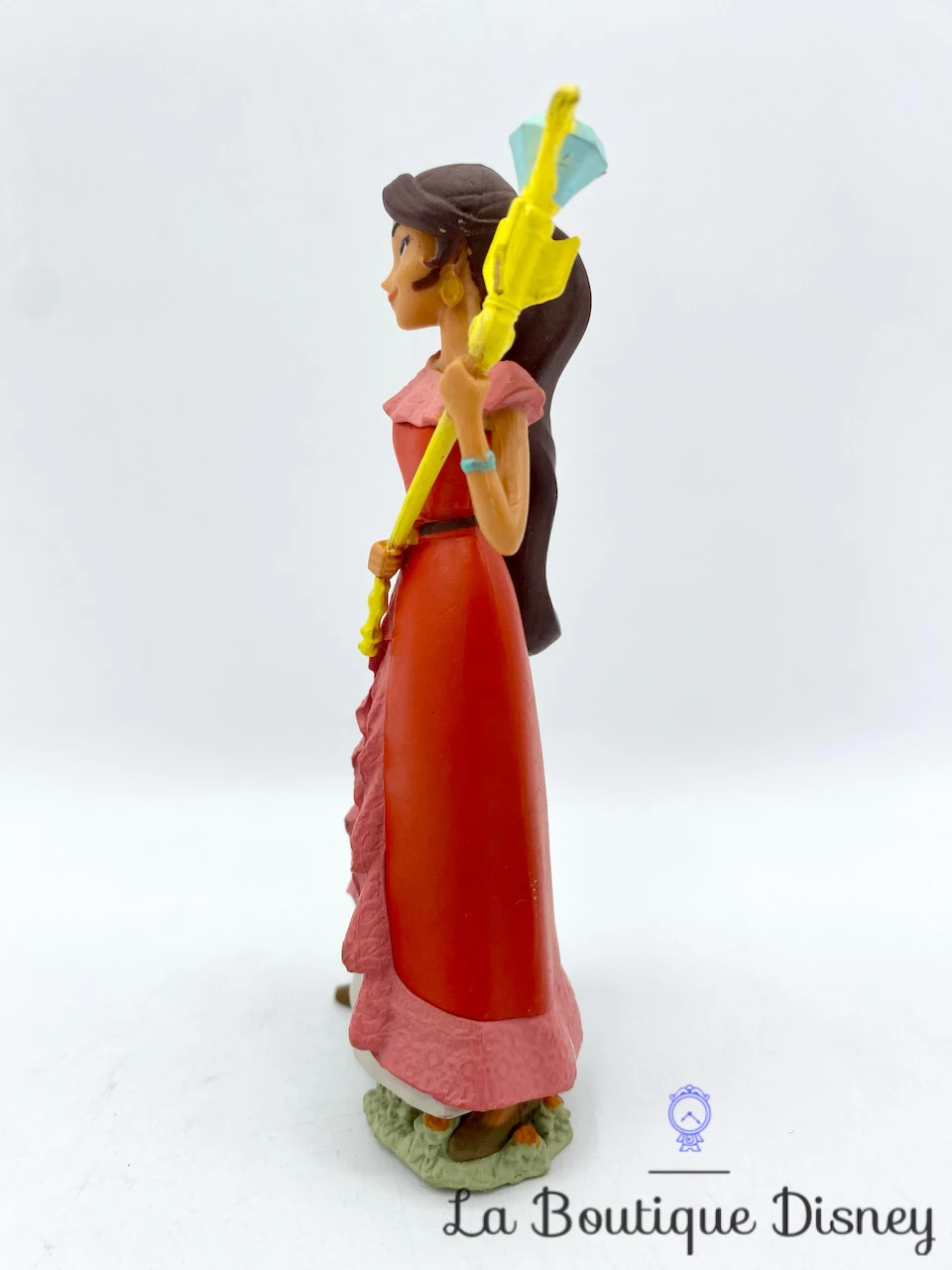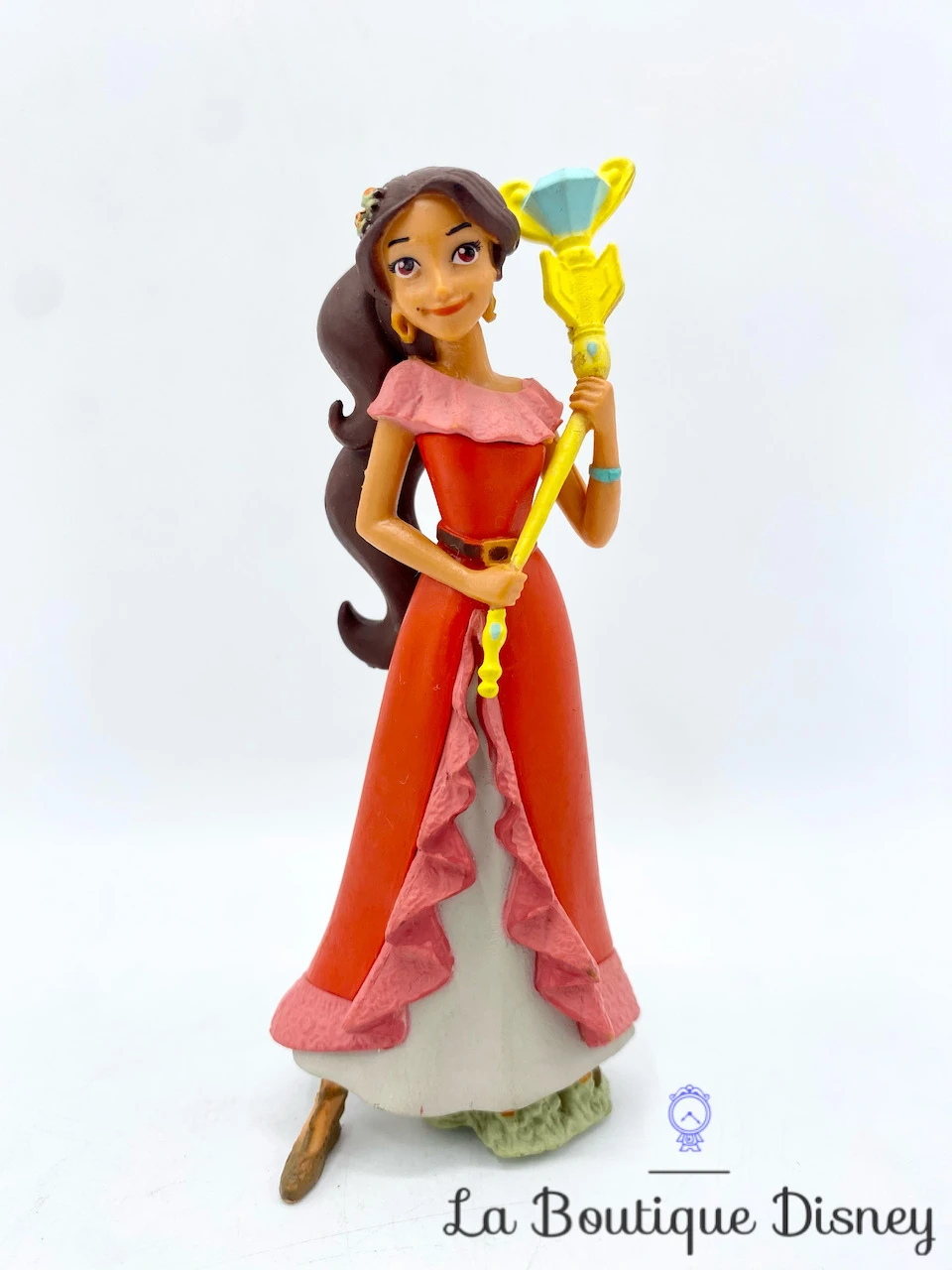 Figurine en plastique peinte à la main d’Elena d’Avalor, l’héritière latine du trône d’Avalor dans sa magnifique robe rouge. Elle tient à sa main un grand sceptre jaune avec un diamant sur le dessus.