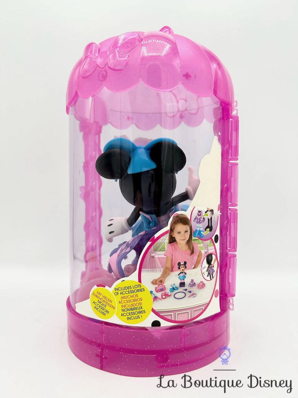La Minnie Fashionista Gym Fun est une superbe figurine que toutes les enfants vont vouloir collectionner pour jouer avec ou tout simplement pour l’admirer. Il faut dire qu’avec sa grande taille (15 cm de hauteur) il y a de quoi s’amuser sans limites avec Minnie et tout l’univers de Disney. Amuse-toi à vêtir ton personnage préféré dans ses magnifiques tenues de sport et accessoires. Vous avez 3 robes, des patins, des baskets, des chaussures de danse, 2 bandeaux pour les cheveux, une corde à sauter et des écouteurs pour connecter votre lecteur de musique. La boite rose peut également se transformer en dressing !