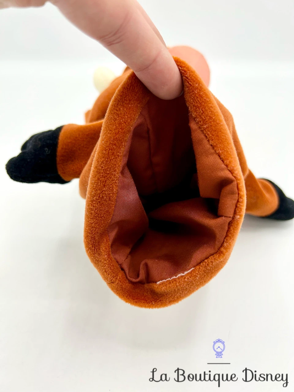 Peluche du phacochère marron et meilleur ami de Timon, Pumbaa. Il a des yeux en plastique noirs, une grande touffe entre ses deux oreilles et deux grandes cornes. En dessous de la peluche, il y a un emplacement pour glisser sa main, elle peut alors devenir une marionnette. Peluche / marionnette très originale pour compléter une collection !
