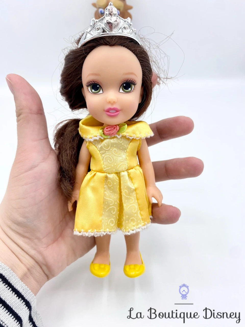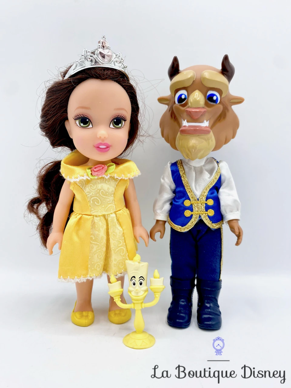 Ensemble de deux mini poupées à l’effigie de la Belle et de la Bête avec une figurine de Lumière, le chandelier maître d’hôtel du château. La princesse est vêtue de sa tenue de bal jaune avec des chaussures assorties et une jolie tiare dans ses longs cheveux bruns noués par un ruban satiné. Le prince s’est déjà transformé ! Deux belles mini poupées formant un joli couple pour recréer chez vous une des plus belles scènes de ce film d’animation ! La Belle et la Bête a marqué les esprits de millions d’enfants à travers le monde depuis sa sortie en 1991. Récemment, il a eu droit aux honneurs d’un remake live très fidèle, où l’on retrouve quasiment à l’identique l’inoubliable scène de danse dans la salle de bal du château. Une scène auquel ce coffret rend également hommage.
