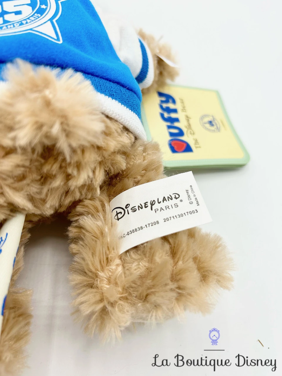Collection « 25 ème anniversaire ». Produit officiel du parc Disneyland Paris datant de 2017. Étiquette officielle « Duffy The Disney Bear ».