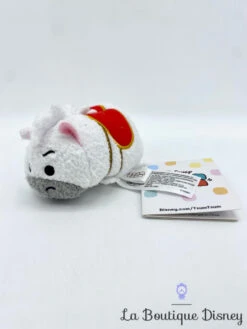 Petite peluche en polyester du cheval blanc Maximus. Auparavant il appartenait à la garde royale jusqu’à ce qu’il fasse la rencontre de Flynn Rider dans le dessin animé Raiponce. Maximus a de jolis yeux brodés, un museau gris, une crinière blanche et sur son dos une selle marron et rouge.